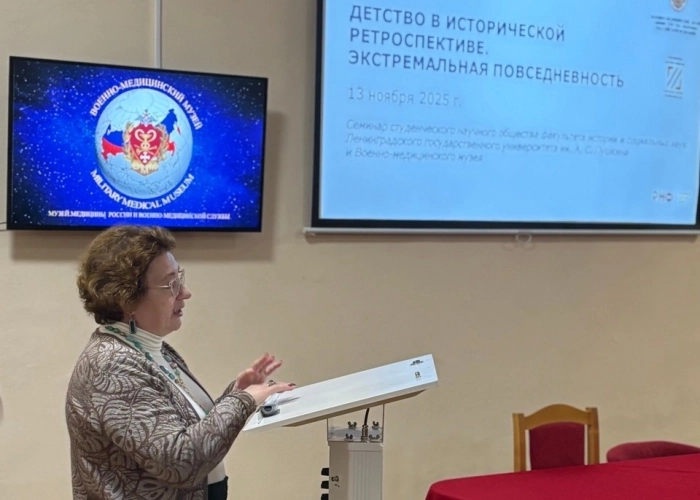 На выездном семинаре СНО обсудили вопросы детства в различные исторические периоды / 17 ноября13 ноября 2025 года в Военно-медицинском музее состоялся выездной семинар студенческого научного общества (СНО) факультета истории и социальных наук ЛГУ им. А.С. Пушкина «Детство в исторической ретроспективе: экстремальная повседневность». |