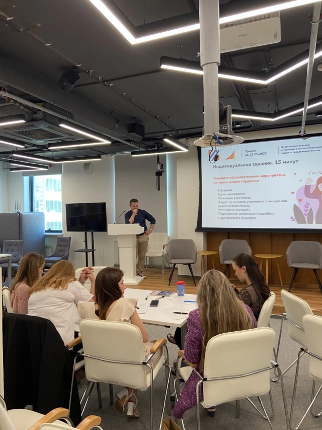 Обучающий курс «Актуальные проблемы развития региональной экономики в России», разработанный научно-педагогическим составом экономического факультета ЛГУ им. А.С. Пушкина под руководством Н.М. Косамчёвой, осенью 2025 года прошли сотрудники организаций инфраструктуры поддержки субъектов малого и среднего предпринимательства (МСП). В нём приняли участие 25 сотрудников организаций инфраструктуры поддержки фонда «Фонд поддержки предпринимательства и промышленности Ленинградской области», субъектов МСП из Гатчинского, Киришского, Всеволожского, Бокситогорского, Выборгского, Сланцевского, Волховского районов и Соснового Бора. Обучение включало как теоретический материал, так и практико-ориентированные задания, разбор кейсов, работу с нормативными актами и другие виды интерактивной работы.