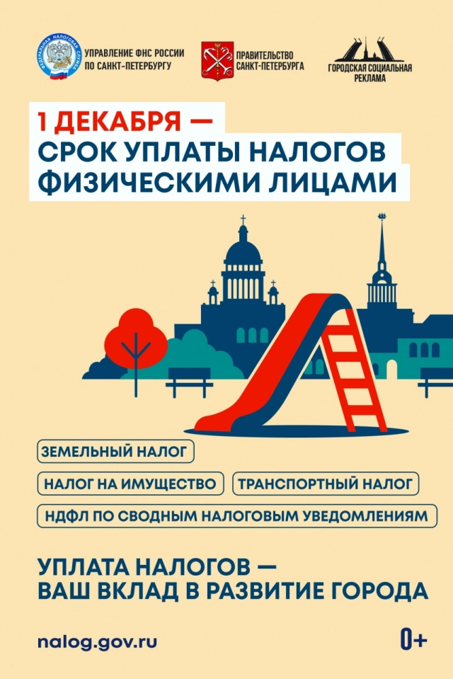 Межрайонная Инспекция Федеральной налоговой службы России № 20 по Санкт-Петербургу напоминает о едином сроке уплаты имущественных налогов физических лиц и налога на доходы физических лиц по сводным налоговым уведомлениям.