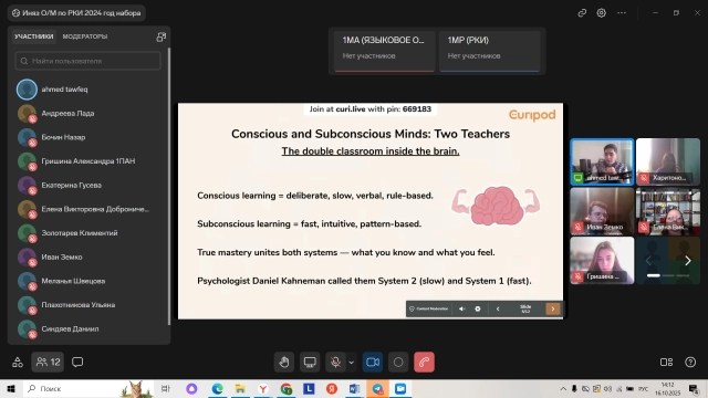Преподаватель Кокшетауского университета Ахмед Тауфик провел лекцию для студентов факультета иностранных языков нашего вуза по теме «В сознании обучающегося: “тихий” процесс обучения» (Inside the Learner's Mind: The Silent Process of Learning). Были затронуты вопросы различий в изучении родного и иностранного языка, способы сознательного и подсознательного овладения языковыми навыками и варианты организации подсознательного обучения иностранному языку.