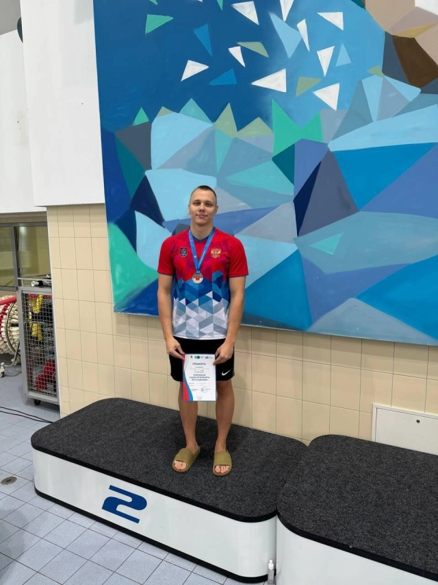 ► студент II курса Владислав Григорьев завоевал две серебряные медали — на дистанции 50 м брассом с результатом 27,16 и на дистанции 100 м брассом с результатом 58, 25.