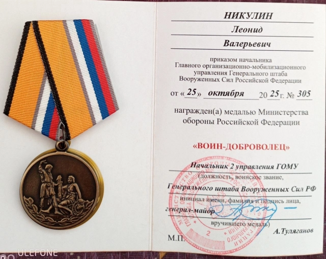 Эта награда учреждена в 2024 году и вручается участникам специальной военной операции за мужество, стойкость и высокий профессионализм, проявленные в ходе боевых действий.