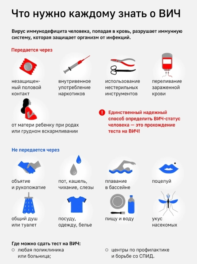 При наличии положительного результата теста осуществляется повторное обследование. Все ВИЧ-инфицированные граждане Российской Федерации, нуждающиеся в лечении, получают его бесплатно. Сдать анализ на ВИЧ можно во всех поликлиниках и больницах на всей территории Российской Федерации, а также в Центрах по профилактике и борьбе со СПИД.