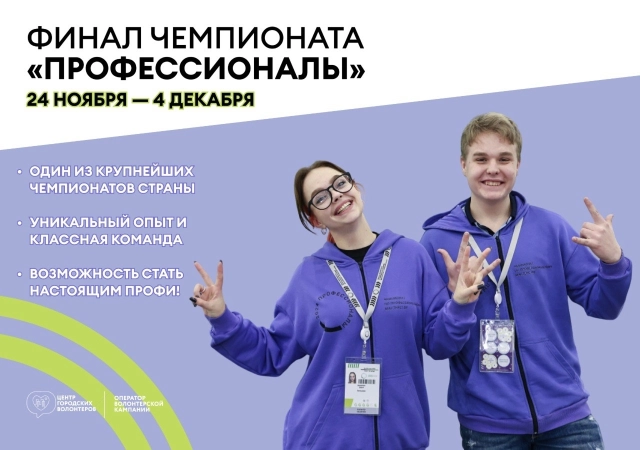 Оргкомитет Чемпионата по профессиональному мастерству «Профессионалы», который будет проходить с 28 ноября по 4 декабря 2025 года в конгрессно-выставочном центре «Экспофорум», объявляет набор волонтёров.