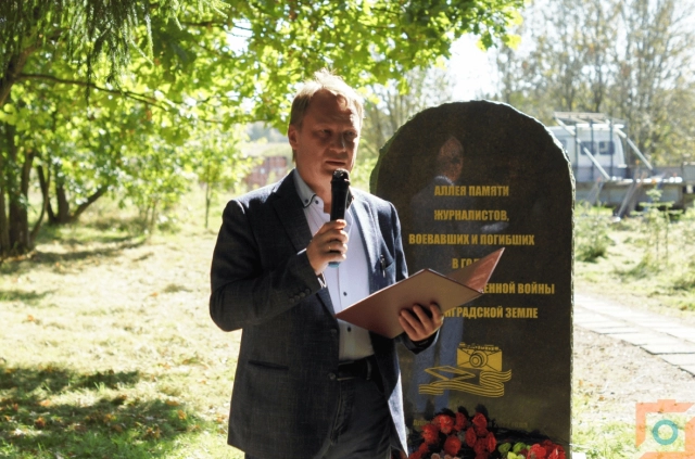 Выступивший затем консультант Комитета по печати Игорь Николаевич Орлов отметил, что Аллея памяти журналистов в Любани — первая в России. Здесь был один из важных участков битвы за Ленинград в 1941–1942 годах. Двумя годами позднее через Любань шли на прорыв солдаты Волховского фронта во время операции по прорыву блокады Ленинграда. В боях принимали участие и журналисты, многие из которых не вернулись домой. Во время войны в войска были направлены лучшие журналистские силы. Военкоры писали о мужестве и подвигах наших солдат, их стойкости и любви к Родине. На фронтах погибли почти 1500 представителей журналистского цеха; более 50 из них — это те, кто воевал на территории Ленинградской области. Именно здесь, в этих лесах, Муса Джалиль написал свои самые проникновенные стихи, затем был ранен, попал в плен и был казнен фашистами. Память об этих людях важно сохранить.