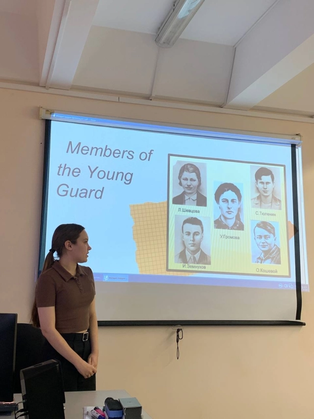 Первокурсники с гордостью и волнением рассказывали о родных городах и их героическом прошлом. В аудитории прозвучали истории о Казани, ковавшей оружие для фронта, о Ярославле, принявшем тысячи эвакуированных, о непокоренном Ленинграде и о многих других, больших и малых, городах и поселках. В рамках докладов вспомнили и о беспримерном подвиге тружеников тыла и солдат фронта — обо всех, чьим трудом и страданием была выкована наша общая Победа.