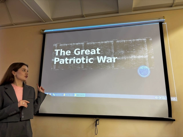 31 октября 2025 года студенты I курса факультета иностранных языков под руководством старшего преподавателя кафедры лингвистики и перевода Елены Геннадьевны Богданович присоединились к ряду значимых патриотических мероприятий, проходивших в Ленинградской области и по всей стране и провели занятие-семинар на английском языке на тему «Малая Родина. Вклад в Великую Победу».