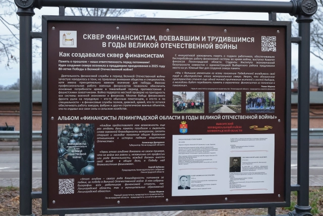 Директор Института, Стелла Константиновна Кравченко, выступая на церемонии открытия памятника, отметила, что будущих финансистов заинтересовал вопрос обеспечения тыла в годы войны. Вместе с представителем Комитета по управлению муниципальным имуществом и градостроительству Выборгского района Ленинградской области Олегом Лиховидовым студенты изучили архивные документы и выяснили, что сегодняшний сквер расположен на месте, где ранее была сосредоточена экономическая жизнь города. Теперь монумент будет местом памяти и вдохновения для будущих поколений, напоминая о значимости работы военных финансистов в истории нашей страны.