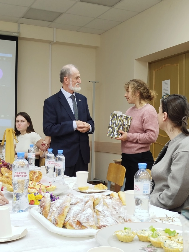 2 декабря 2025 года Дмитрия Викторовича собрались поздравить преподаватели, сотрудники, студенты и выпускники ЛГУ им. А.С. Пушкина. Коллеги отметили его уникальные деловые и личные качества, исключительную интеллигентность, доброжелательность, порядочность, готовность прийти на помощь и оказать поддержку каждому, кто в этом нуждается.