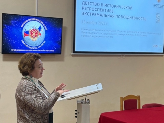 13 ноября 2025 года в Военно-медицинском музее состоялся выездной семинар студенческого научного общества (СНО) факультета истории и социальных наук ЛГУ им. А.С. Пушкина «Детство в исторической ретроспективе: экстремальная повседневность».