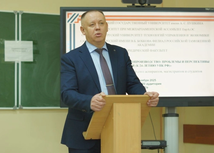 На юридическом факультете обсудили российское уголовное судопроизводство / 27 ноября24 ноября 2025 года на кафедре уголовного права и процесса юридического факультета ЛГУ им. А. С. Пушкина прошел межвузовский научный круглый стол аспирантов, магистрантов и студентов на тему: «Российское уголовное судопроизводство: проблемы и перспективы развития», приуроченный к 24-летию принятия Уголовно-процессуального кодекса Российской Федерации. |
