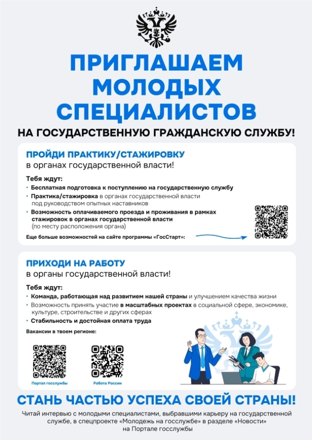 Департамент государственной политики в сфере среднего профессионального образования и профессионального обучения Минпросвещения России и Министерство труда и социальной защиты России информируют о возможностях построения карьеры для молодежи на государственной гражданской службе Российской Федерации.
