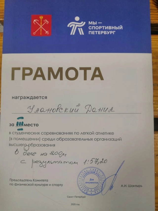 Команда ЛГУ им. А.С. Пушкина собрала целую коллекцию медалей на Студенческих соревнованиях по легкой атлетике среди вузов Санкт-Петербурга в рамках Санкт-Петербургских студенческих спортивных игр, которые прошли 6–7 декабря 2025 года на базе спортивной школы олимпийского резерва «Академия легкой атлетики».