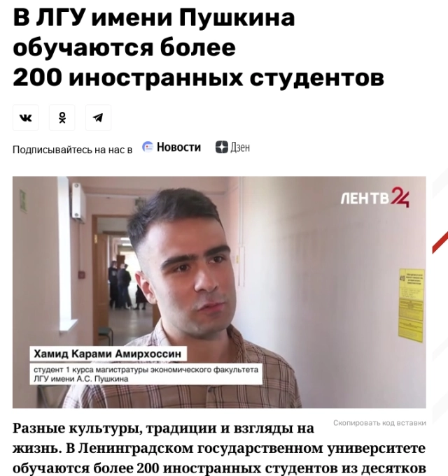 24 сентября 2025 года на телеканале Ленинградской области «ЛенТВ24» вышел новостной сюжет о жизни и учёбе иностранных студентов, проходящих обучение в ЛГУ им. А.С. Пушкина, съёмки которого проходили в главном корпусе университета на прошлой неделе.