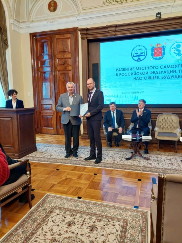 Благодарность председателя Совета муниципальных образований Санкт-Петербурга В.Ф. Беликова объявлена заведующему кафедрой правоведения, кандидату юридических наук, доценту Олегу Васильевичу Виноградову и старшему преподавателю кафедры правоведения Михаилу Владимировичу Мисюрёву.