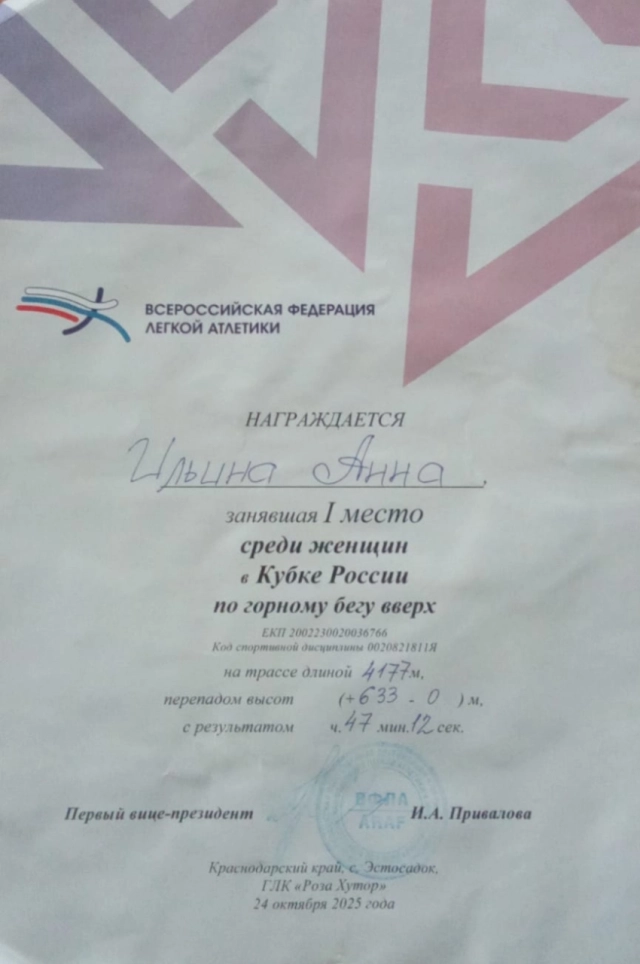Студентка IV курса факультета физической культуры Анна Ильина стала победительницей Кубка России по горному бегу вверх с результатом 47 мин. 12 сек. на трассе длиной 4177 м на высоту 633 м, а также завоевала золото на Чемпионате России по горному бегу (длинная дистанция), преодолев дистанцию в 27 км 132 м с перепадом высот 1382 м за 2 ч. 19 мин. 43 сек.