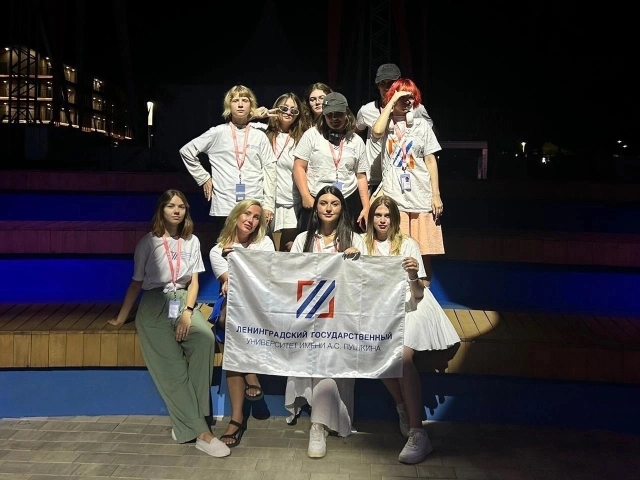 Наставником делегации ЛГУ им. А. С. Пушкина стала специалист по учебно-методической работе Анна Евгеньевна Шуинова. Представителем университета в арт-шествии и на главной сцене выступила выпускница направления Дизайн, старший администратор кафедры философии Виктория Алексеевна Коняхина.