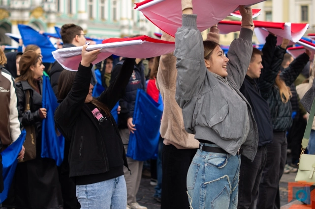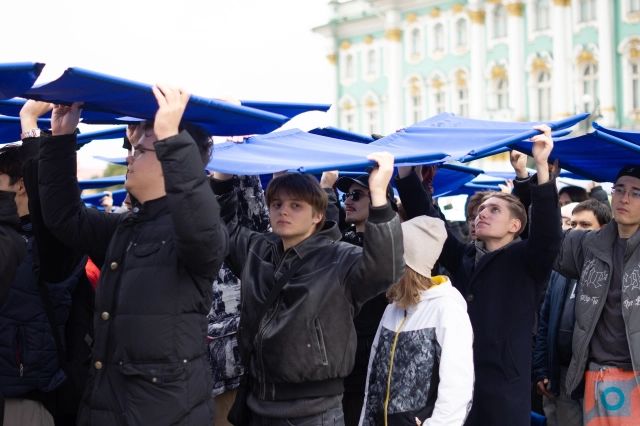 Студенты ЛГУ им. А.С. Пушкина приняли участие в акции «Живой триколор», которая прошла в Санкт-Петербурге 7 октября 2025 года и была приурочена ко дню рождения Президента Российской Федерации Владимира Владимировича Путина.