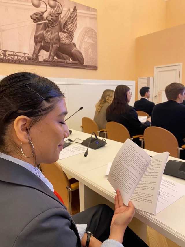 Авазжон Ражапбаева: «Круглый стол оказался очень интересным и мотивирующим, побудил меня задуматься о личном вкладе в развитие родной страны. А сама атмосфера Таврического дворца, его красота и величие, сделали этот день по-настоящему незабываемым. Хотелось бы и в будущем принимать участие в подобных мероприятиях».