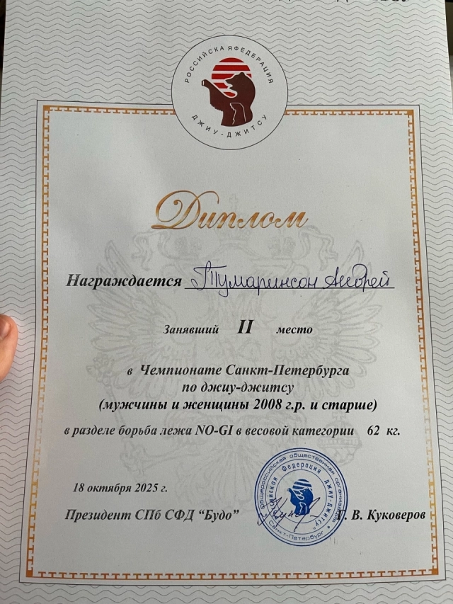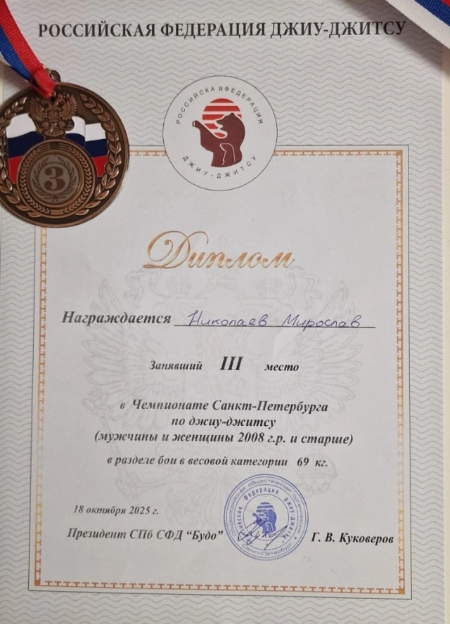 Студенты ЛГУ им. А.С. Пушкина успешно выступили на Чемпионате Санкт-Петербурга по джиу-джитсу (мужчины и женщины 2008 г.р. и старше), прошедшем в Комплексной школе высшего спортивного мастерства 18 октября 2025 года.