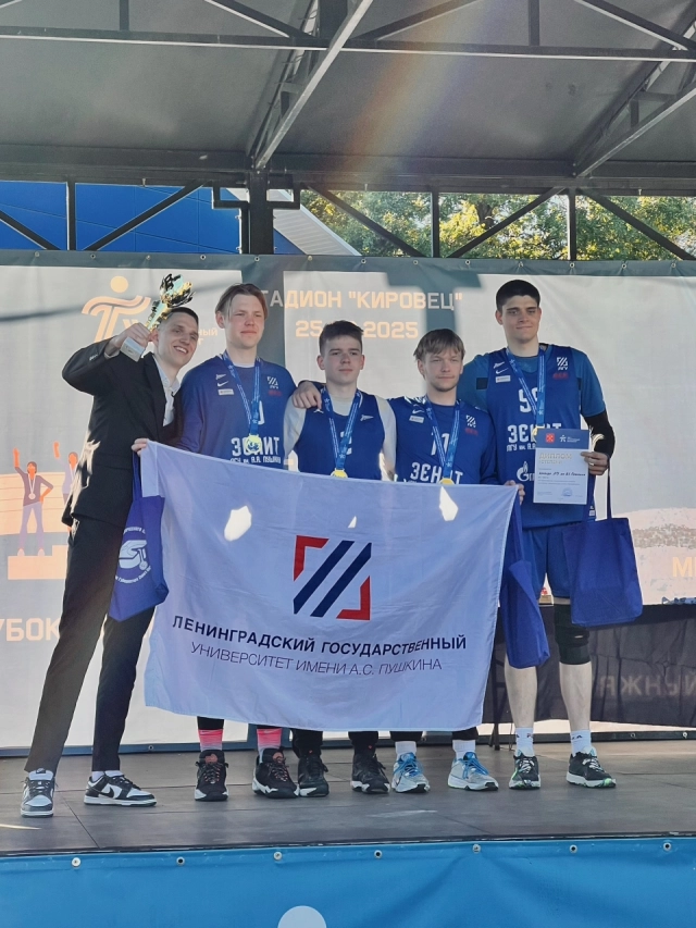 В масштабных спортивных состязаниях по восьми видам спорта приняли участие лучшие сборные региональных вузов и ссузов. В соревнованиях по баскетболу 3х3 мужская сборная ЛГУ им. А.С. Пушкина уверенно заняла первое место. В состав команды вошли студенты факультета физической культуры: Роман Золотарёв, Артём Коттер, Тимофей Крицкий и Степан Теплов.