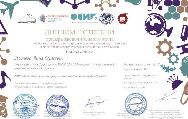 Анна Иванова, студентка V курса факультета факультета естествознания, географии и туризма, стала призёром II степени в номинации «География», набрав 95 баллов из 100 возможных.
