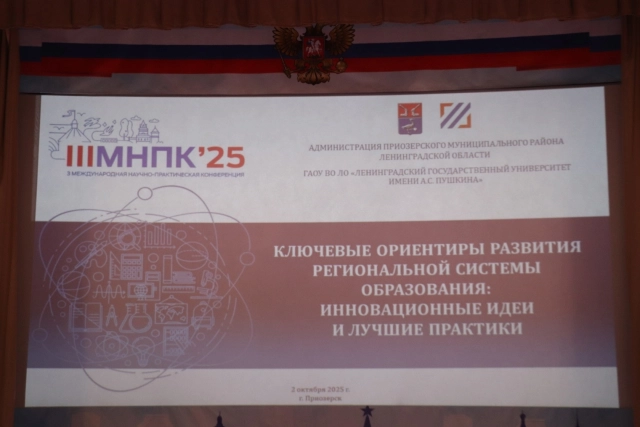 2–3 октября 2025 года в Приозерске состоялась III Международная научно-практическая конференция «Ключевые ориентиры развития региональной системы образования: инновационные идеи и лучшие практики». Её организаторами выступили ЛГУ им. А.С. Пушкина и администрация Приозерского муниципального района Ленинградской области.