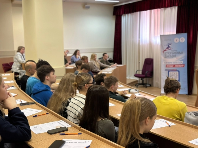 5 октября 2025 года ЛГУ имени А.С. Пушкина прошла просветительская акция «Всероссийский спортивный диктант». В общей сложности в ней приняло участие четверть миллиона человек из всех регионов Российской Федерации. Цель акции: повысить спортивную грамотность и интерес к физической культуре и здоровому образу жизни. Организаторами мероприятия выступили Министерство спорта и Олимпийский комитет России. Написать диктант можно было как очно, так и онлайн. Для участников акции по всей стране работало свыше 800 площадок: вузы и школы, библиотеки и парки.